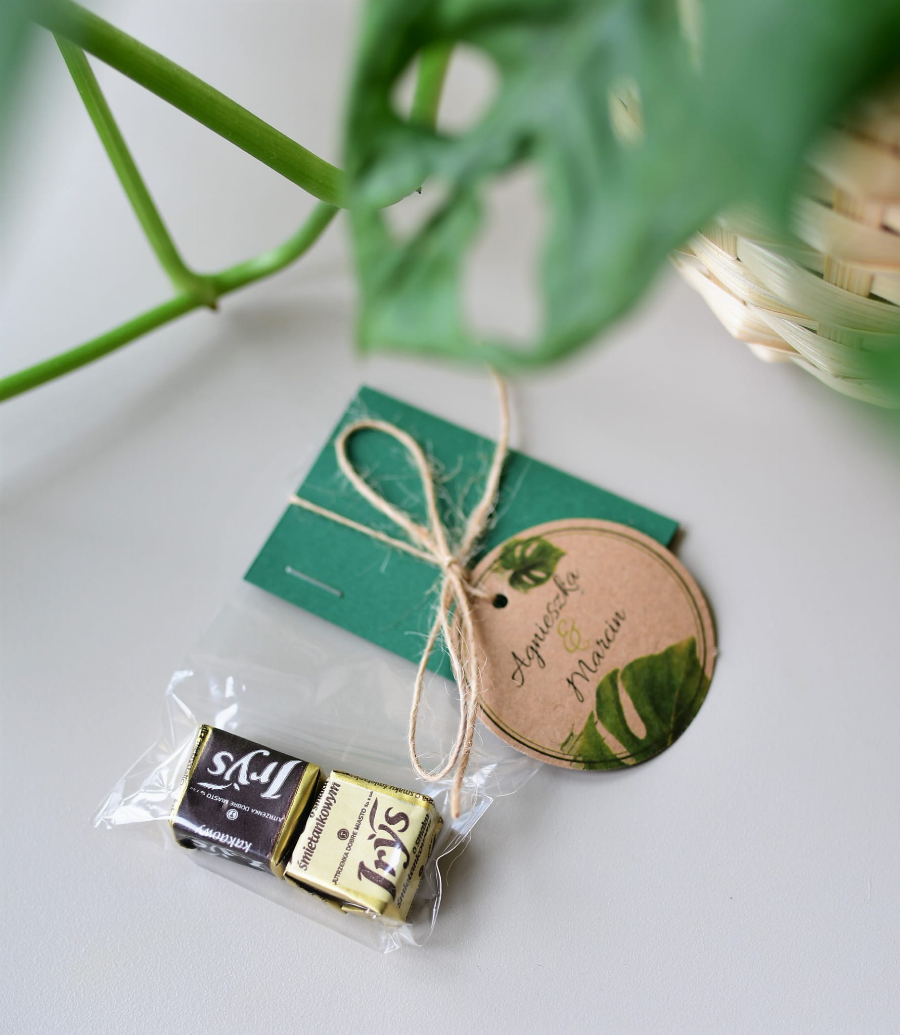 √ wymiary opakowania: 7 x 11 cm - przeźroczysty woreczek z cukierkami + spersonalizowana etykieta