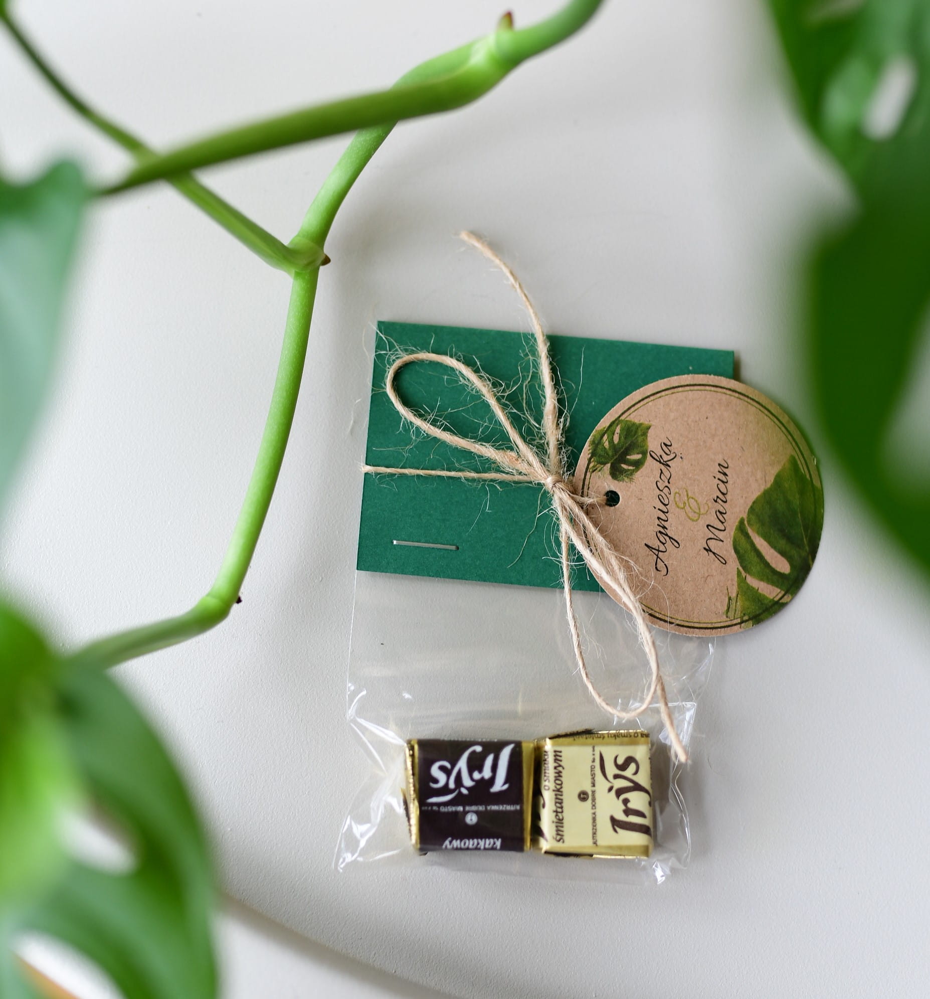 Spersonalizowane cukierki na wesele - słodkie irysy w opakowaniu.