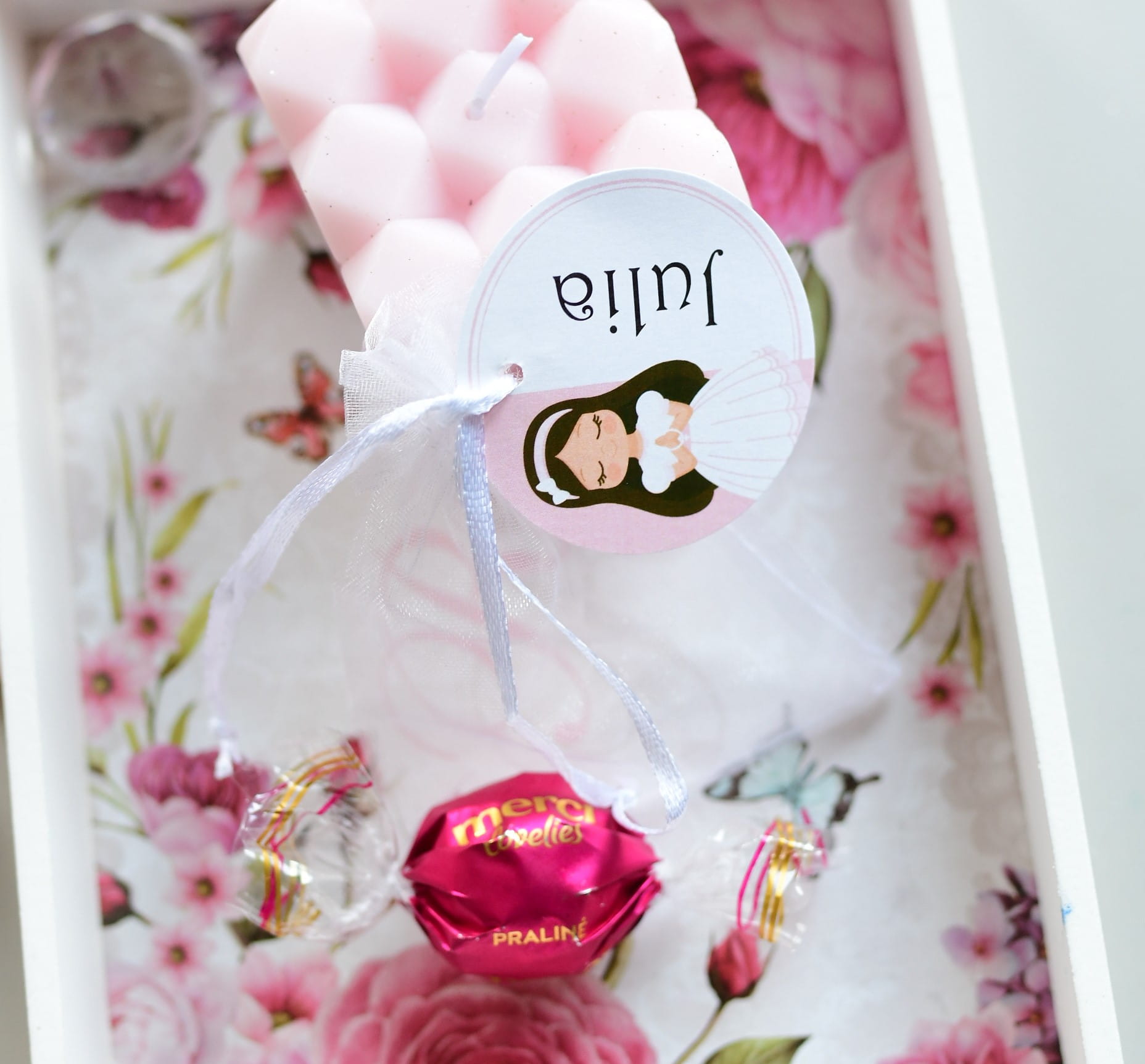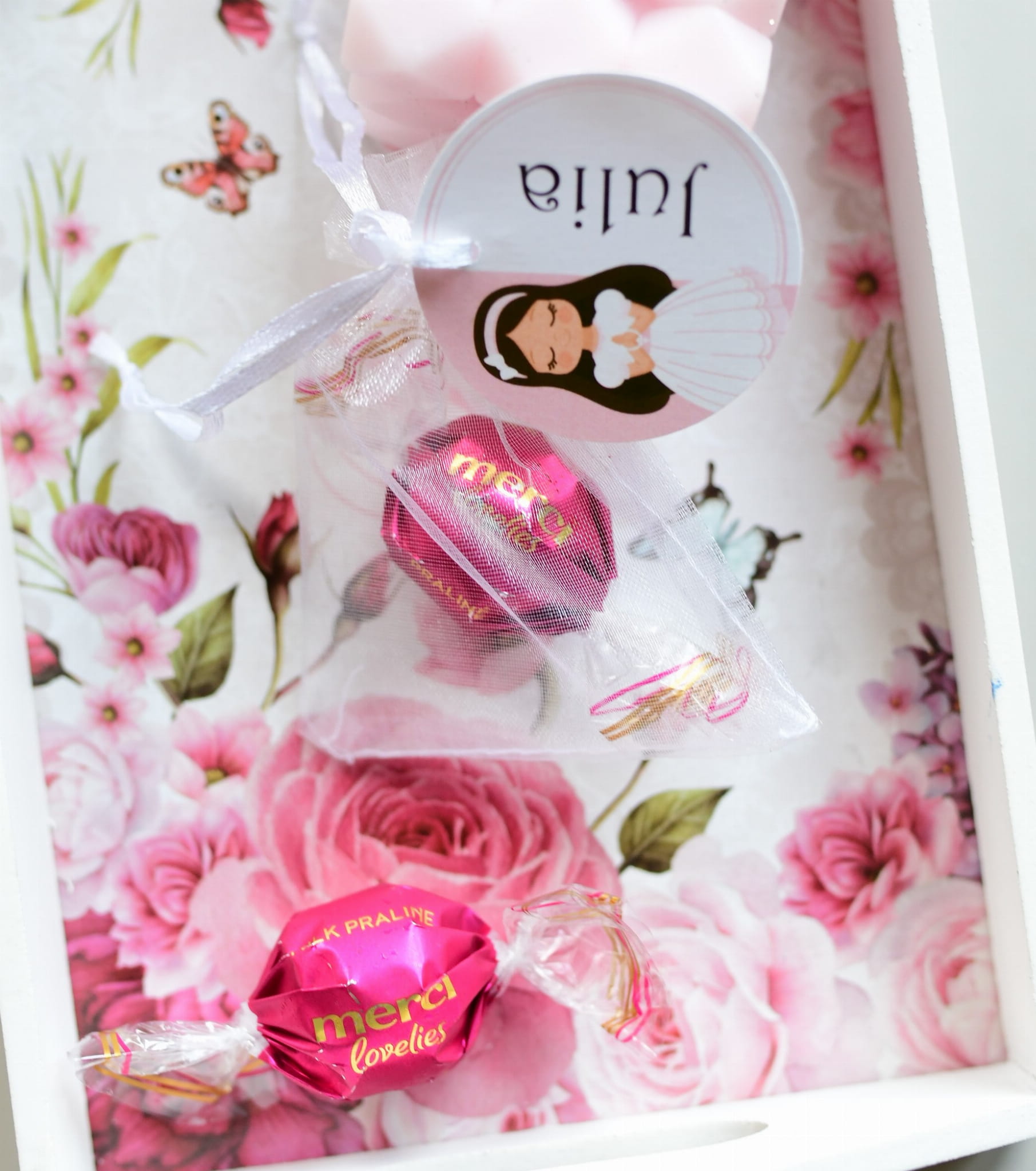 czekoladki kulki MERCI + woreczki z organzy - dziewczynka (minimalne zamówienie 15 szt.)