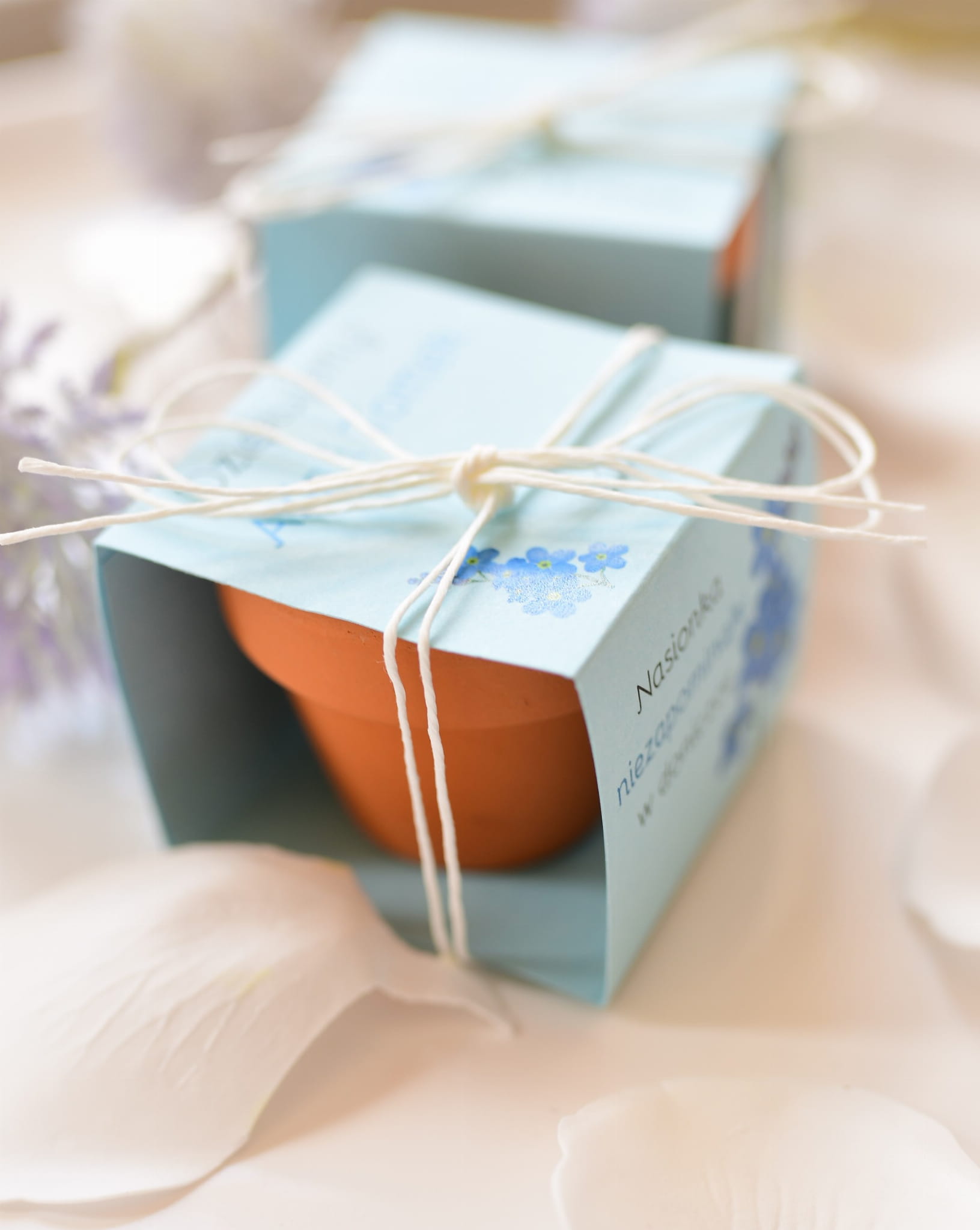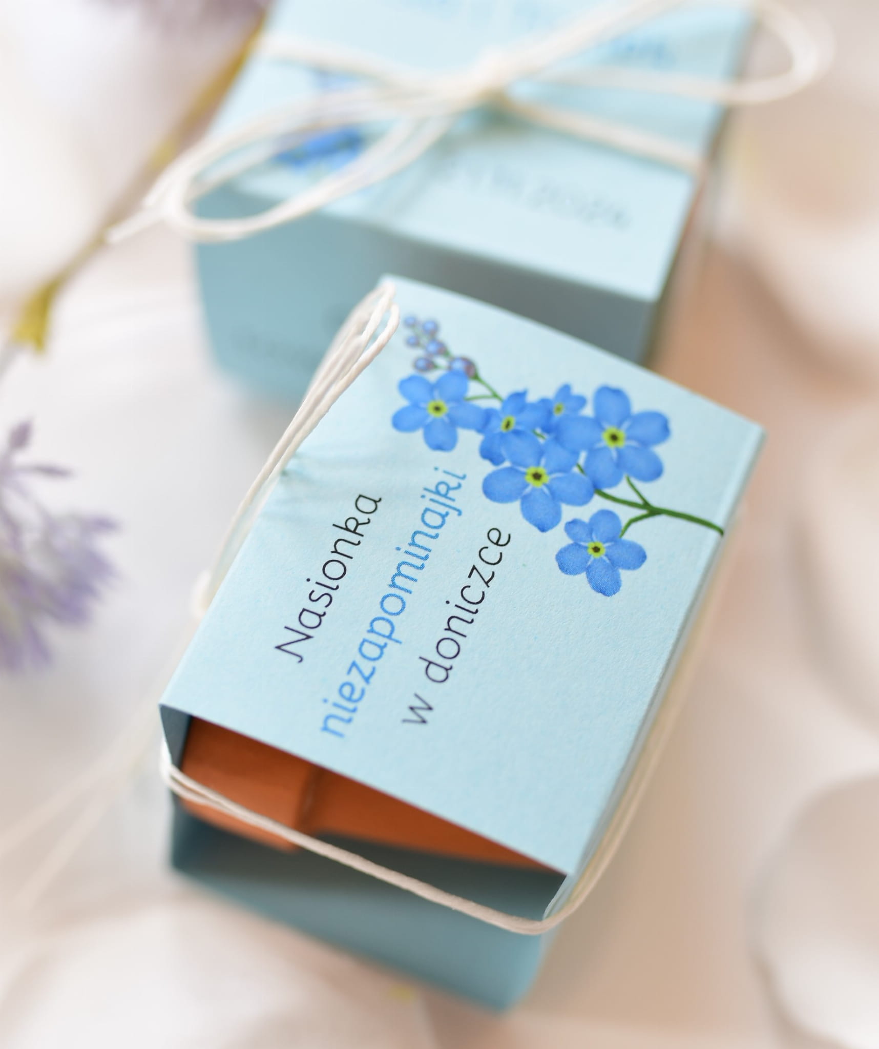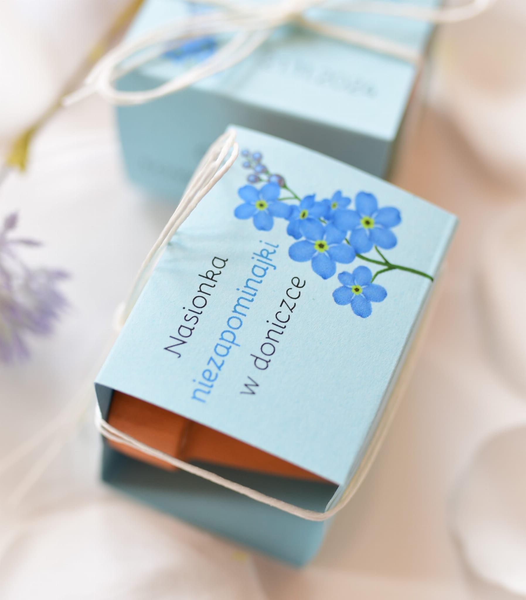 Nietypowe, kwiatowe upominki - doniczki z nasionkami niezapominajek.