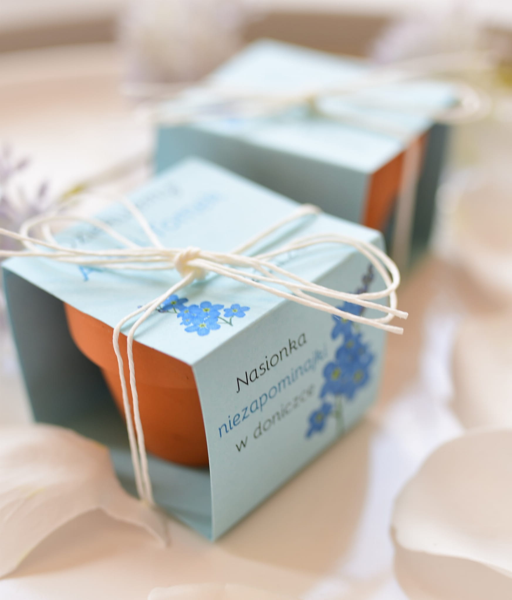 upominki weselne - kwiatowe doniczki z niezapominajką (minimalne zamówienie 15 szt.)