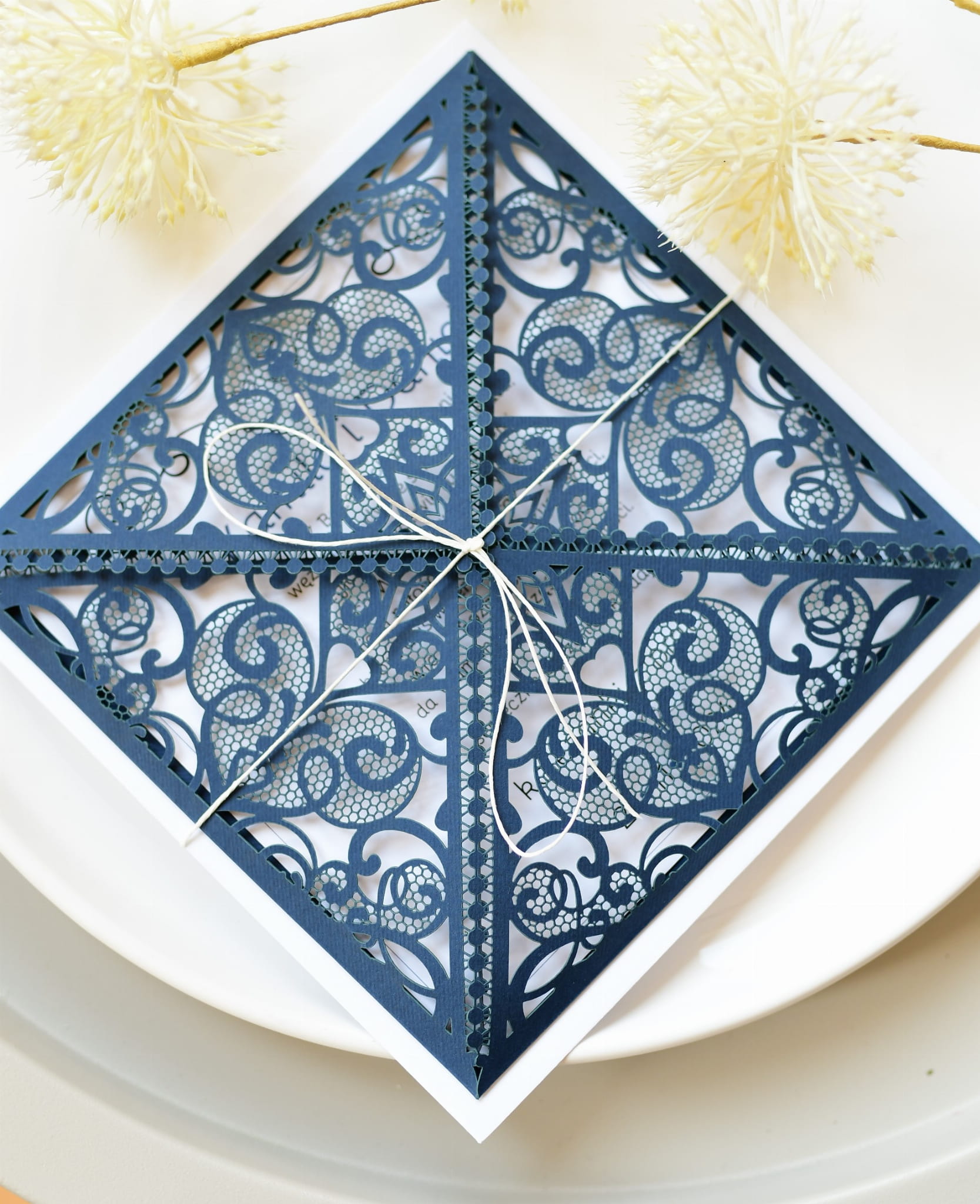 √ wymiary kartki z życzeniami po złożeniu: 16 x 16 cm - kolor granatowy;