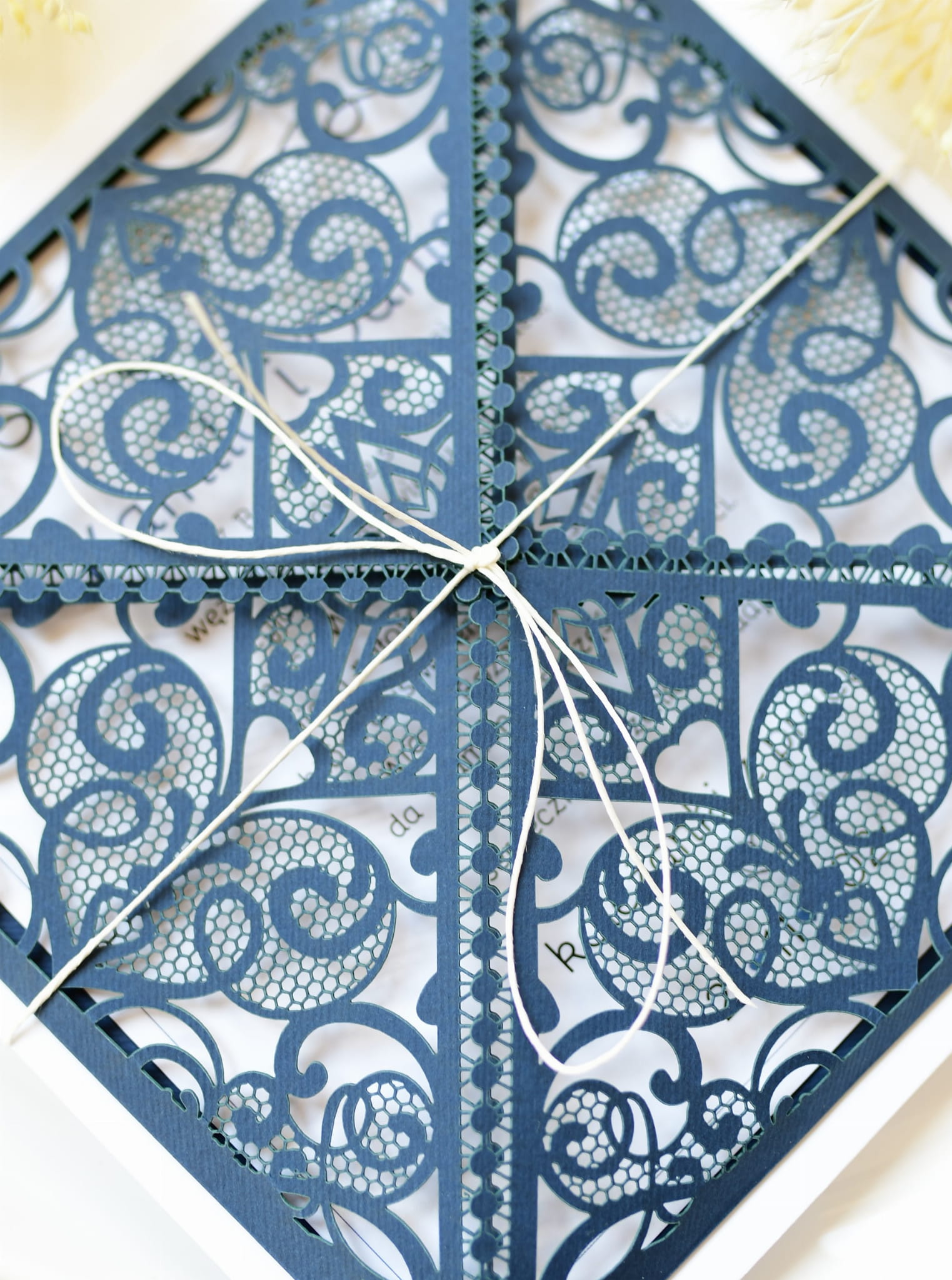 Przepiękna, ażurowa kartka z życzeniami z kopertą na pieniądze dla Pary Młodej.
