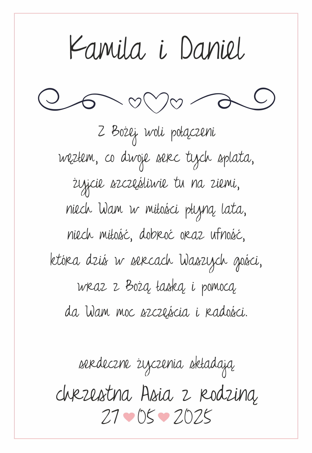 √ personalizacja w cenie (wydruk imion pary młodej, daty, od kogo są życzenia);