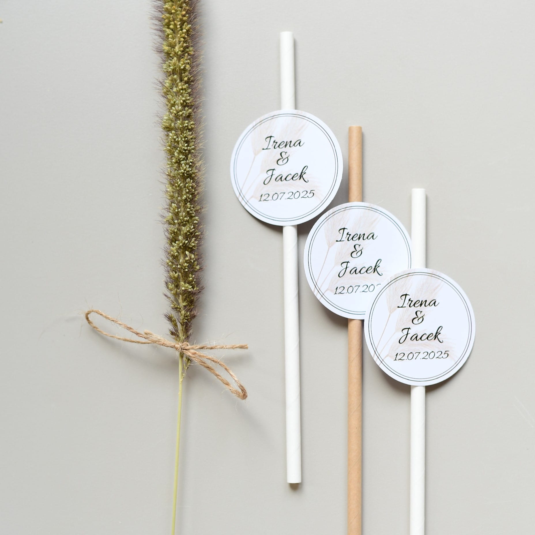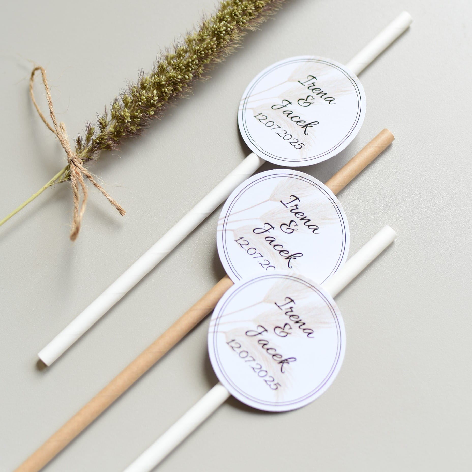 Personalizowane słomki do picia - dekoracje weselne BOHO trawy.