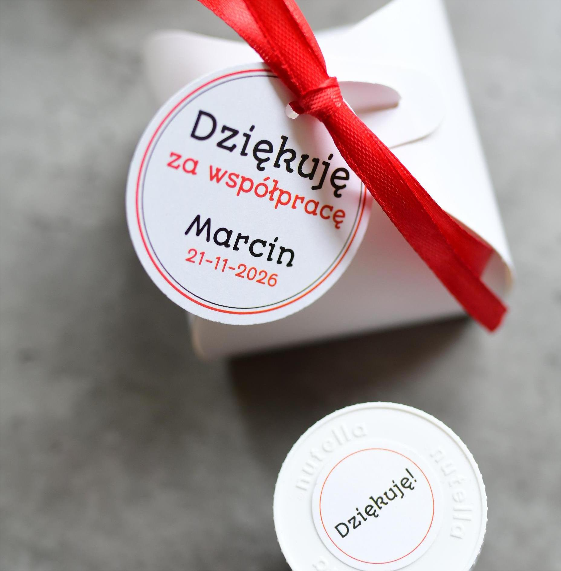 Nadruk na małej etykiecie na wieczku: Dziękuję!