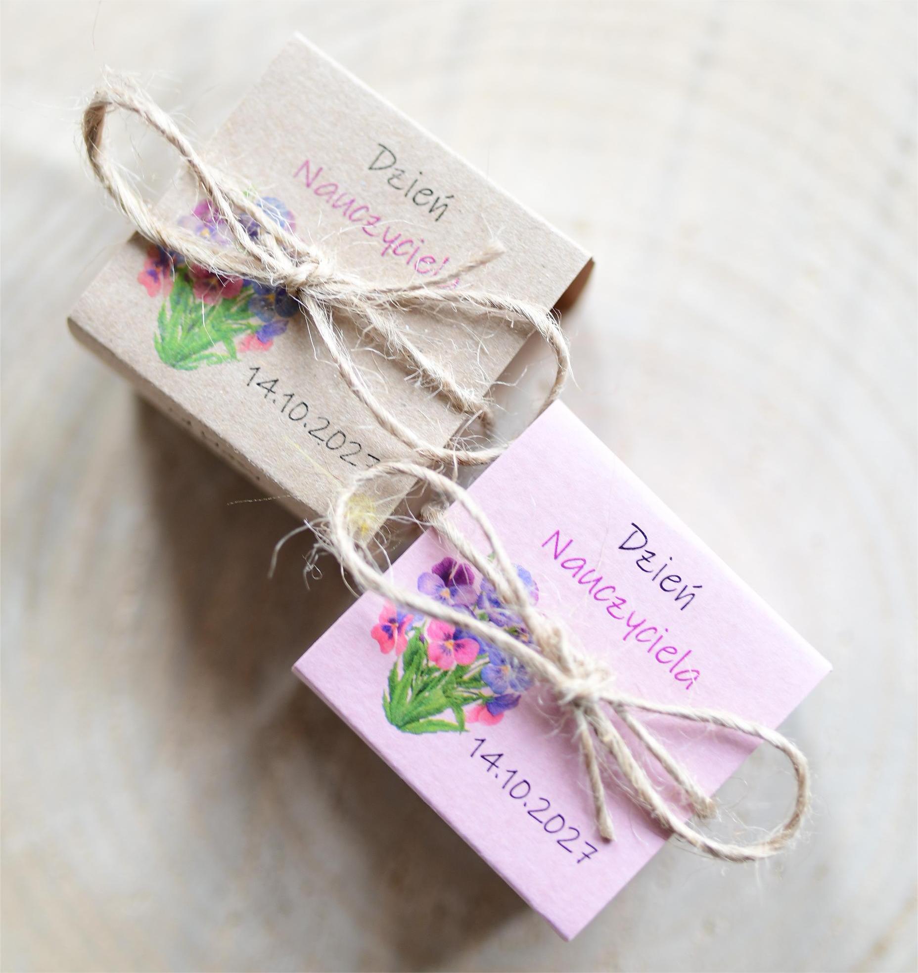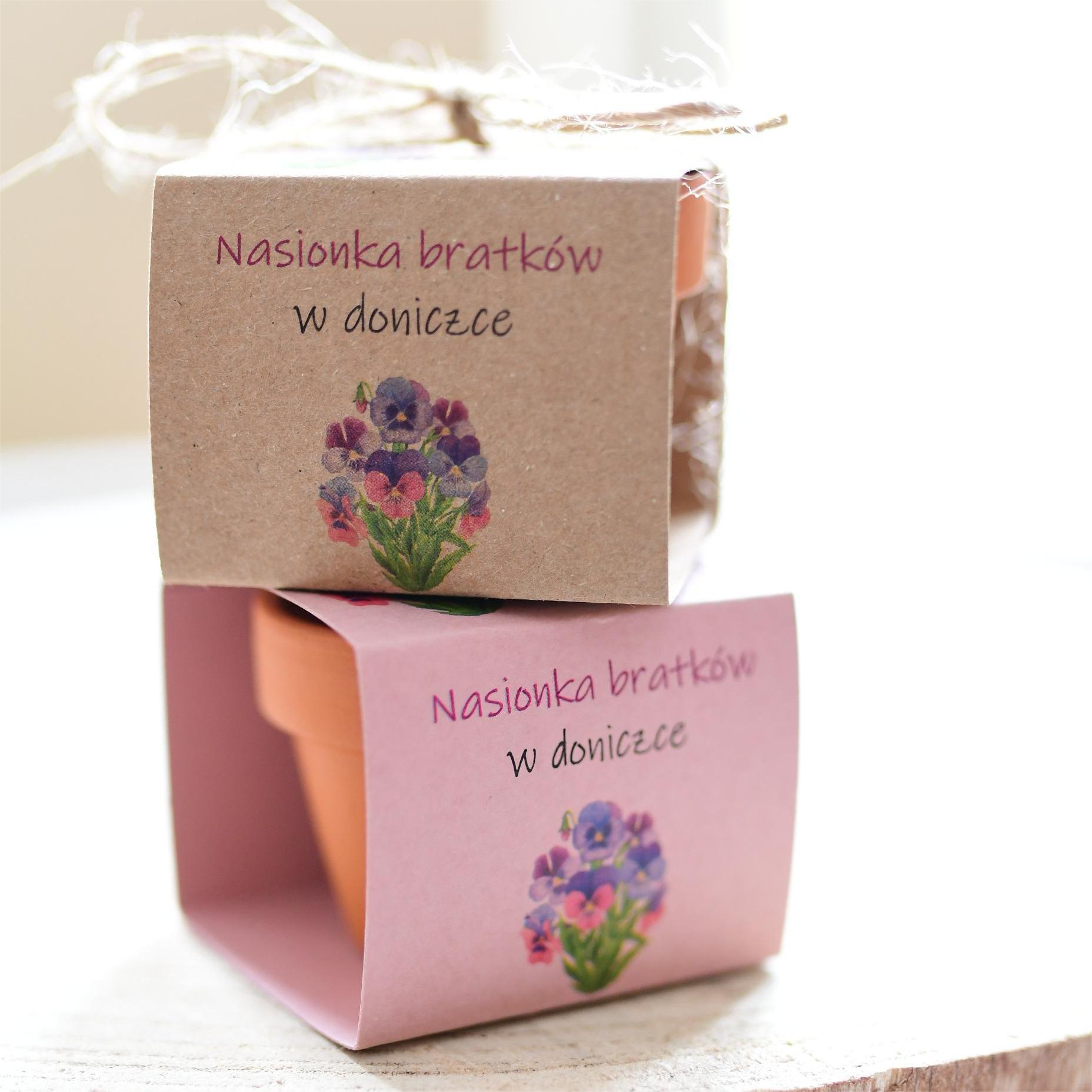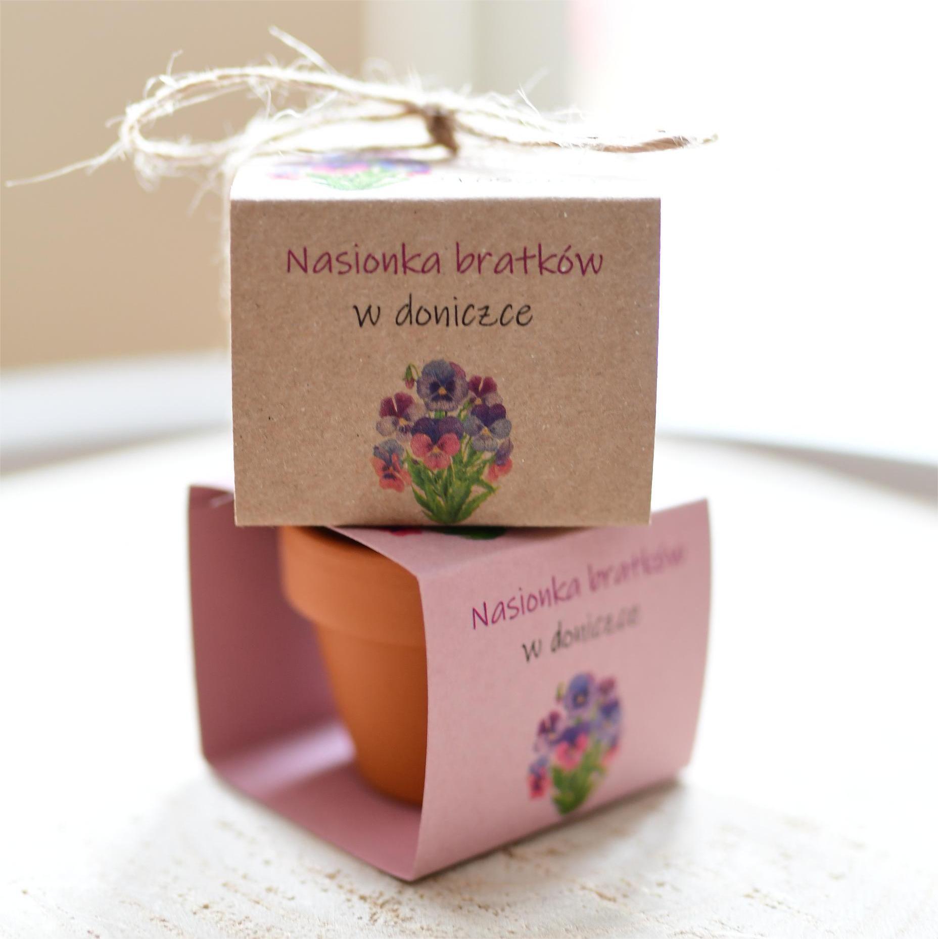 Personalizowana doniczka z nasionkami bratków.