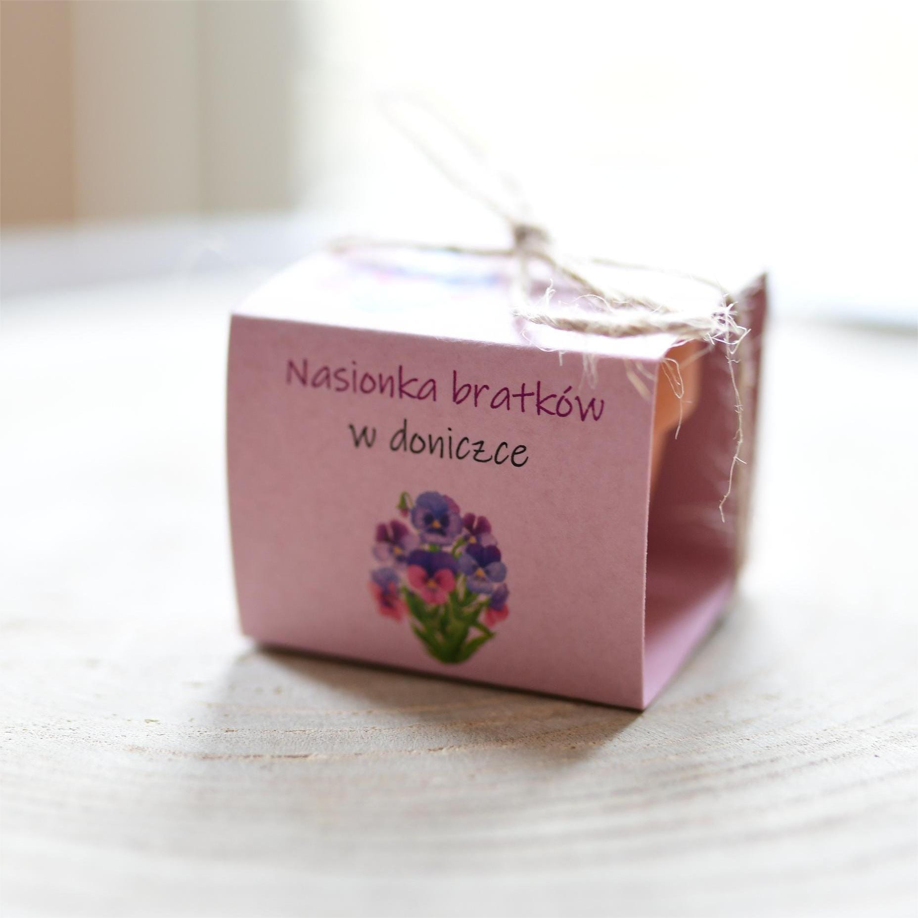 Napis na bocznej ściance: Nasionka bratków w opakowaniu.