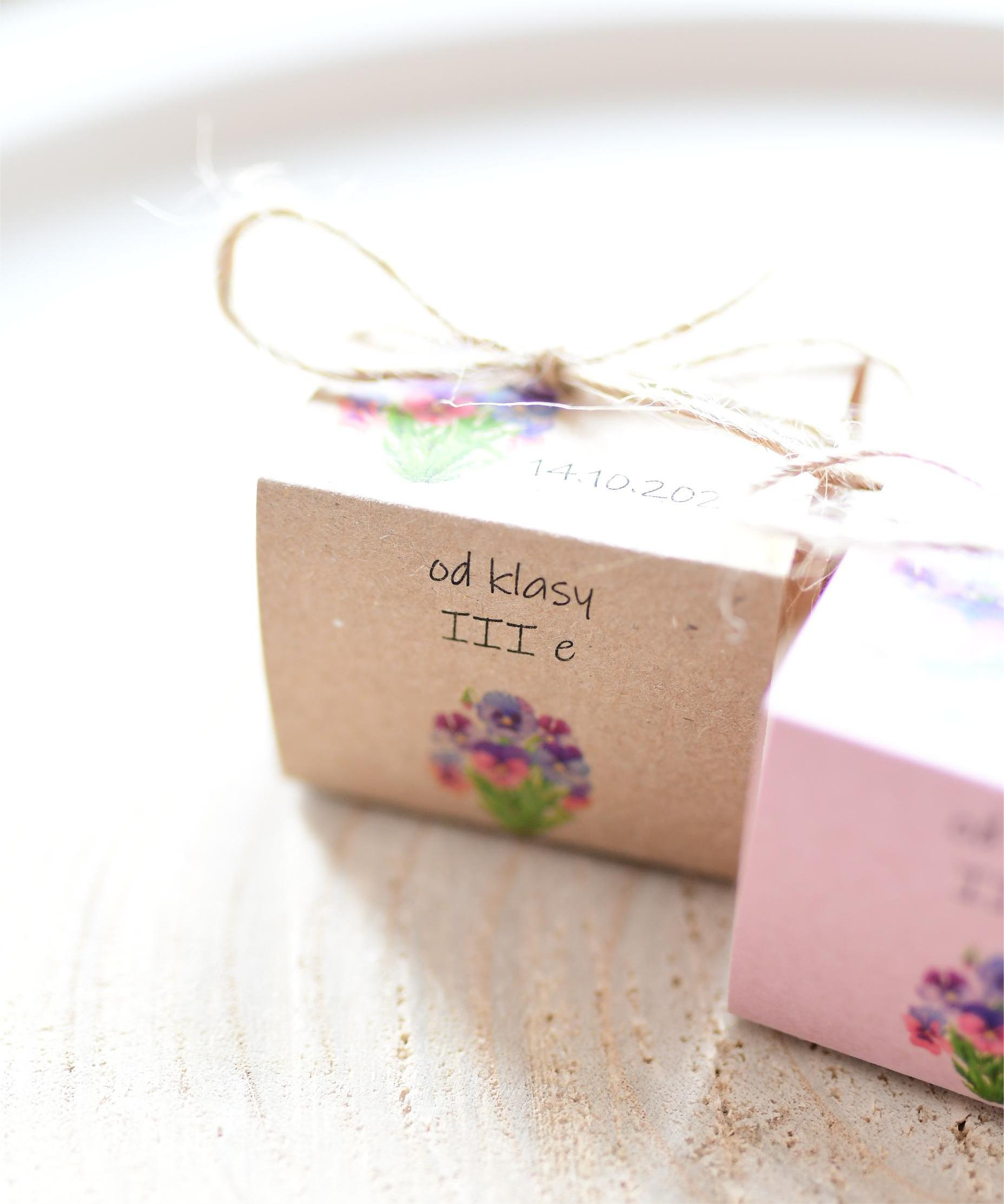 Napis na 2 bocznej ściance: od kogo jest upominek np. III e