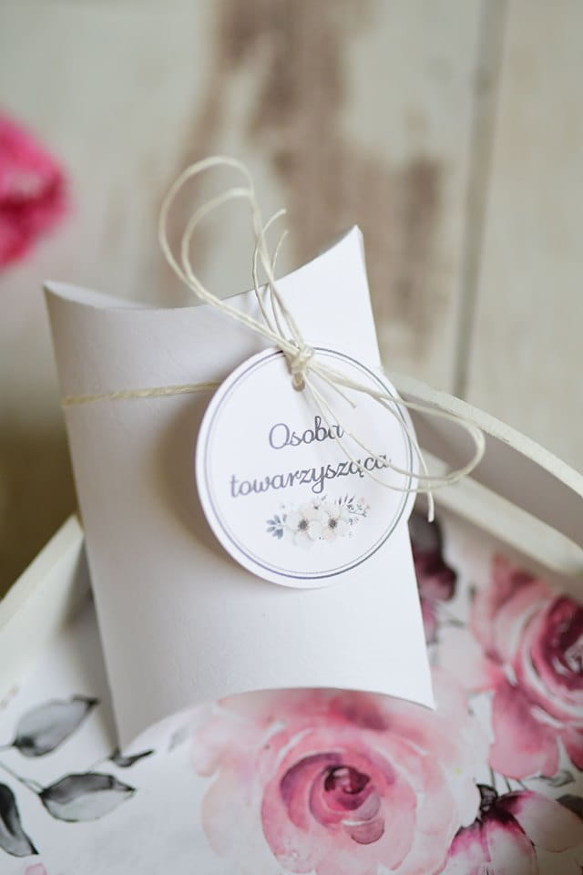 Piękne, białe pudełka na cukierki z wydrukiem Gości na zawieszce!
