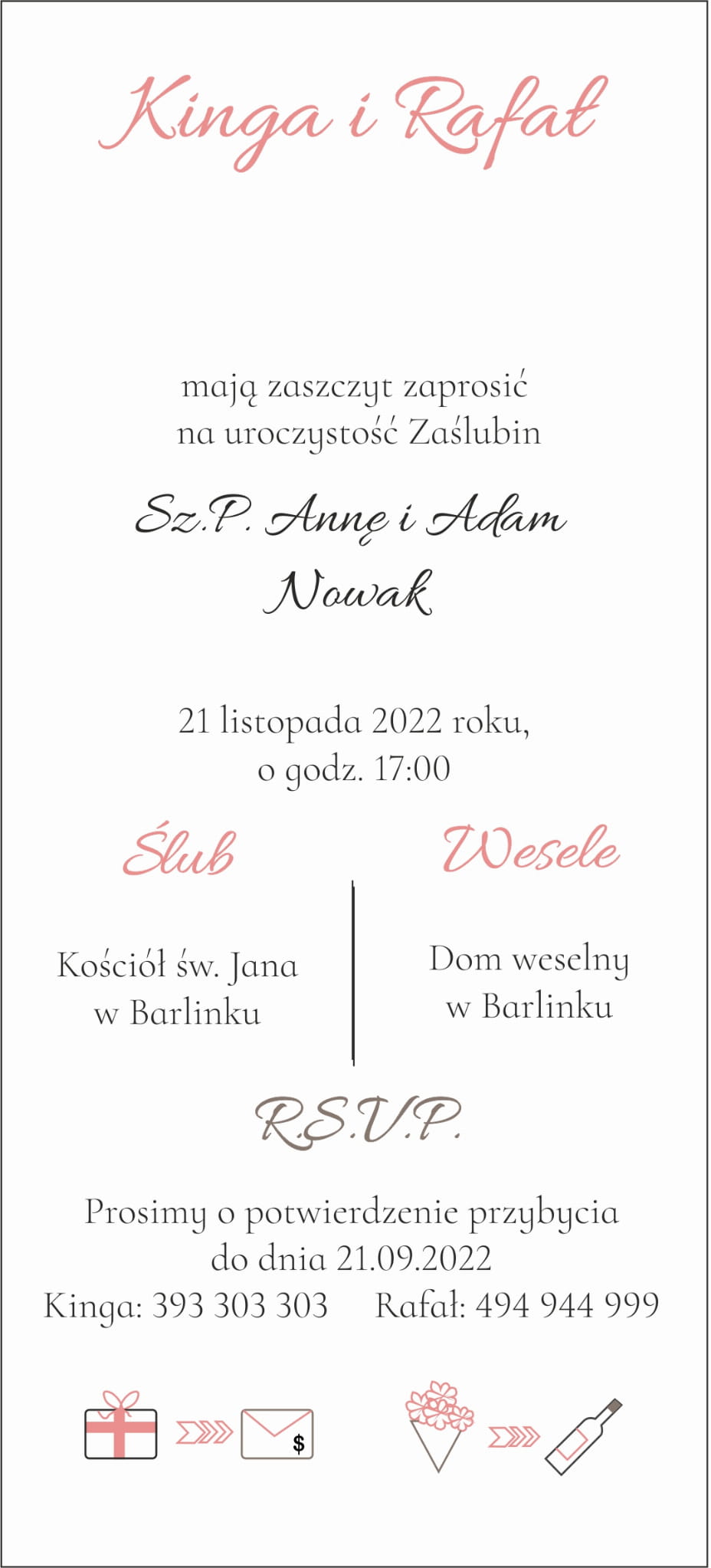 √ wymiary zaproszenia po złożeniu: 10 x 21 cm;