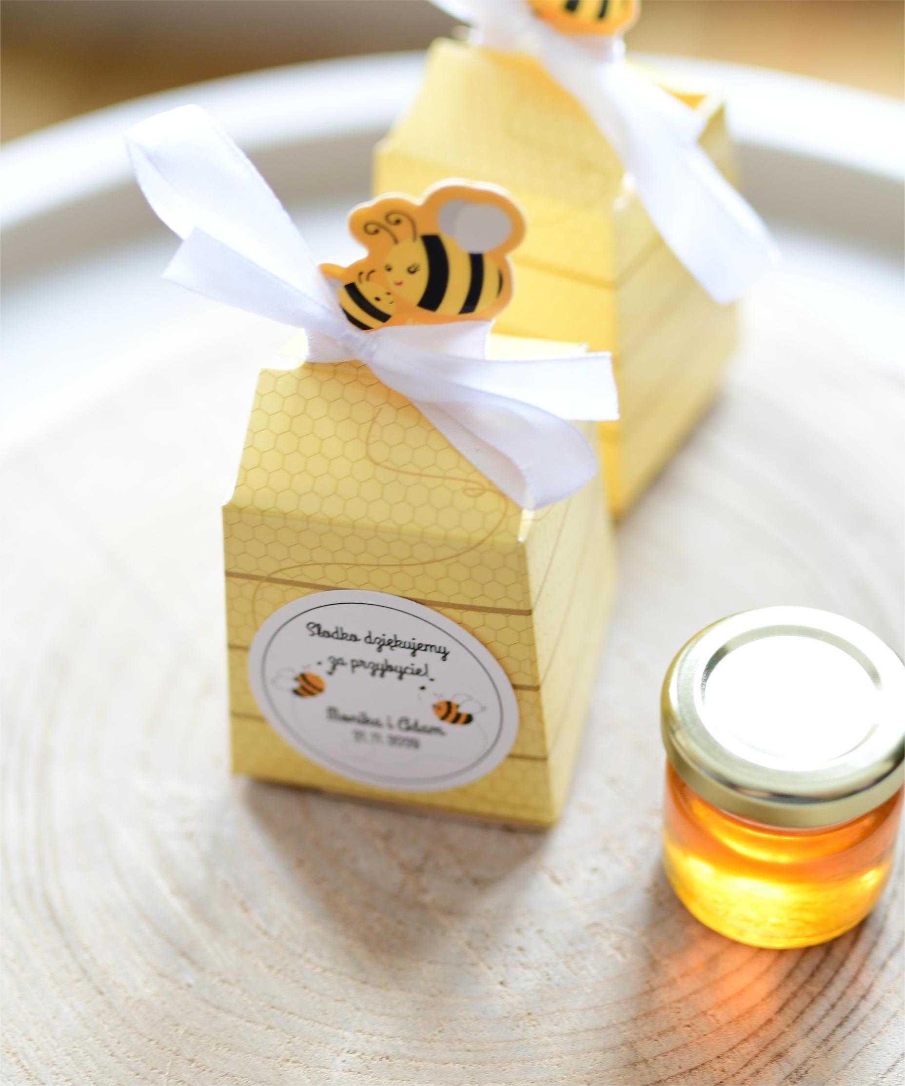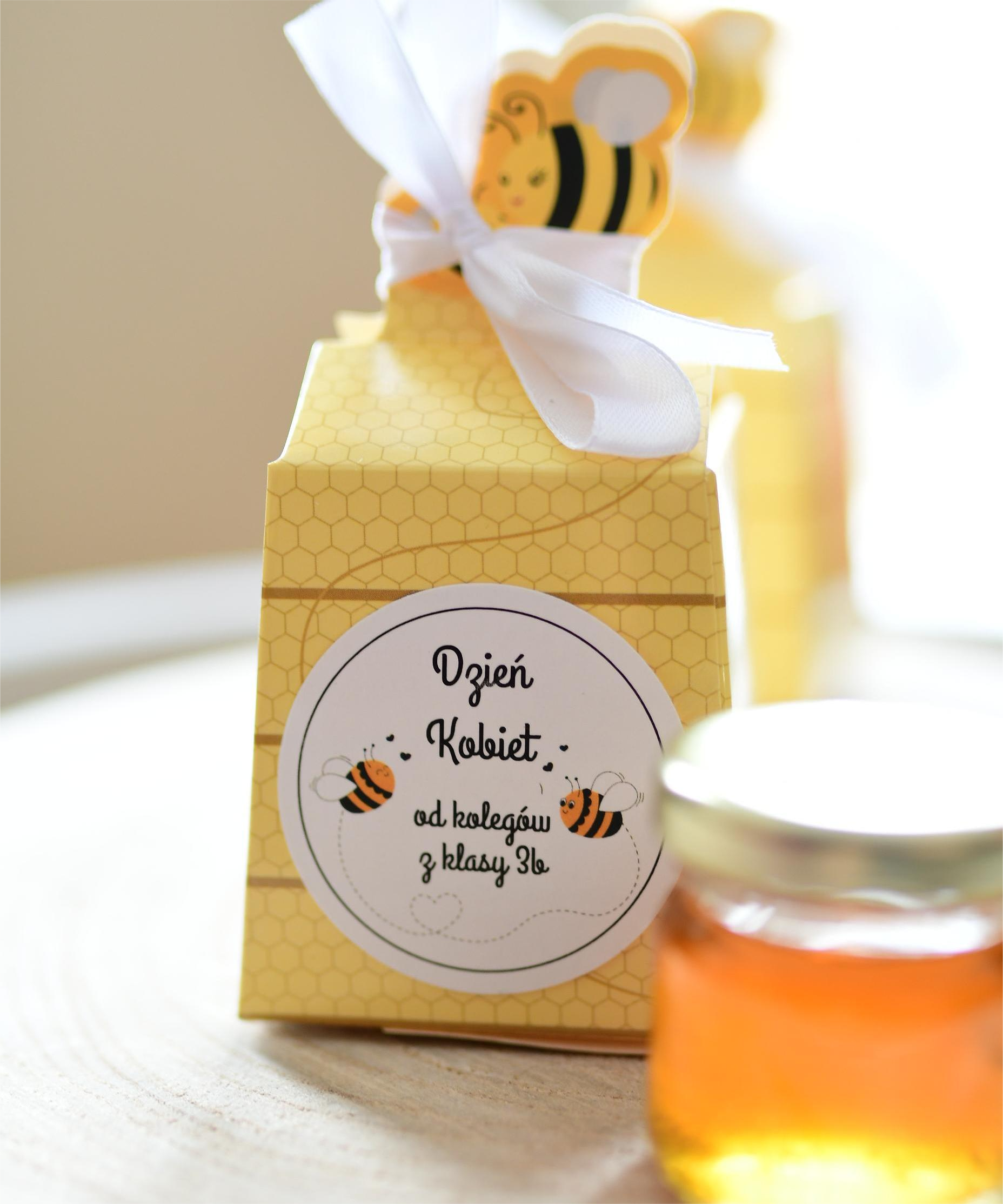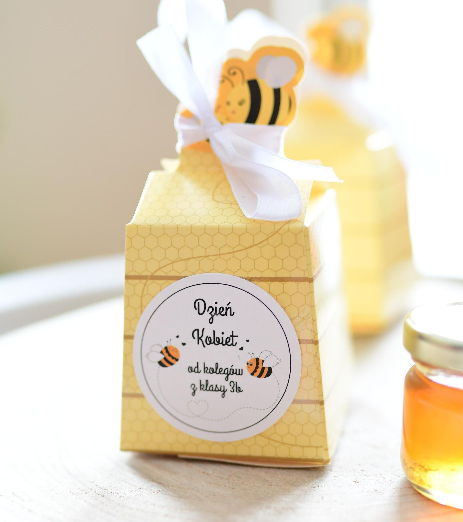 słodkie upominki na Dzień Kobiet - miodek w opakowaniu z pszczółką (minimalne zamówienie 10 szt.)