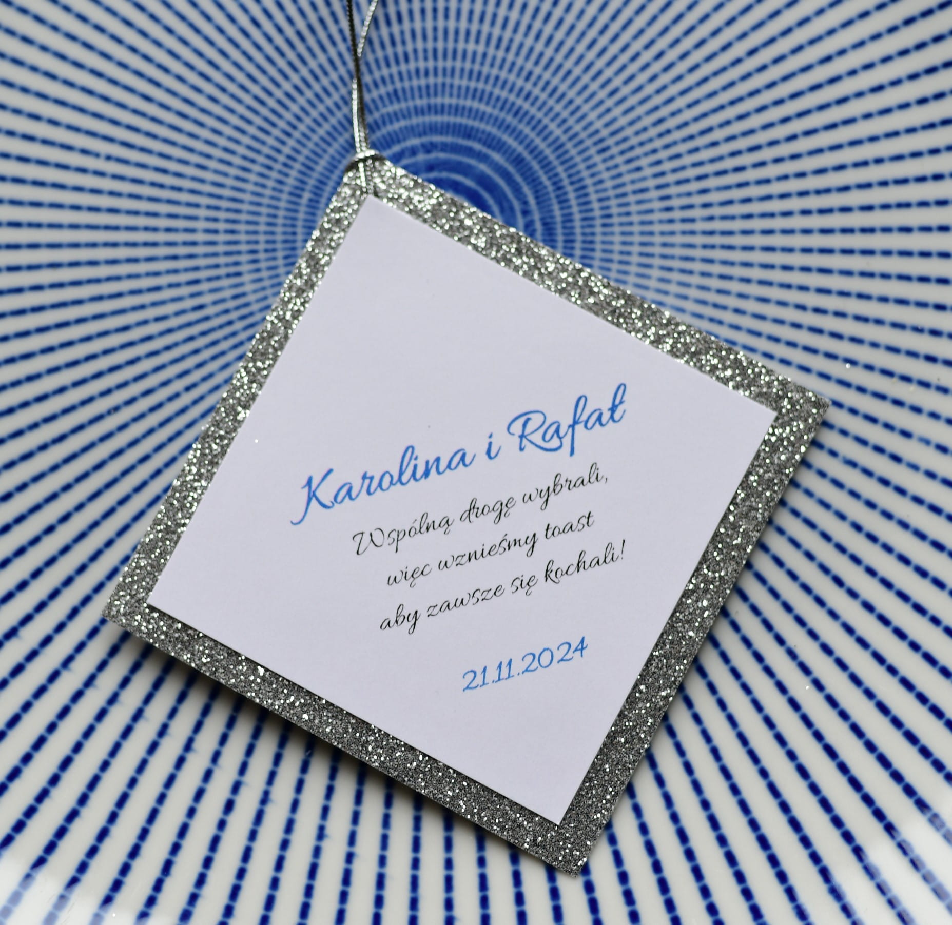 UNIKATOWE brokatowe srebrne zawieszki na alkohol (minimalne zamówienie 15 szt.)