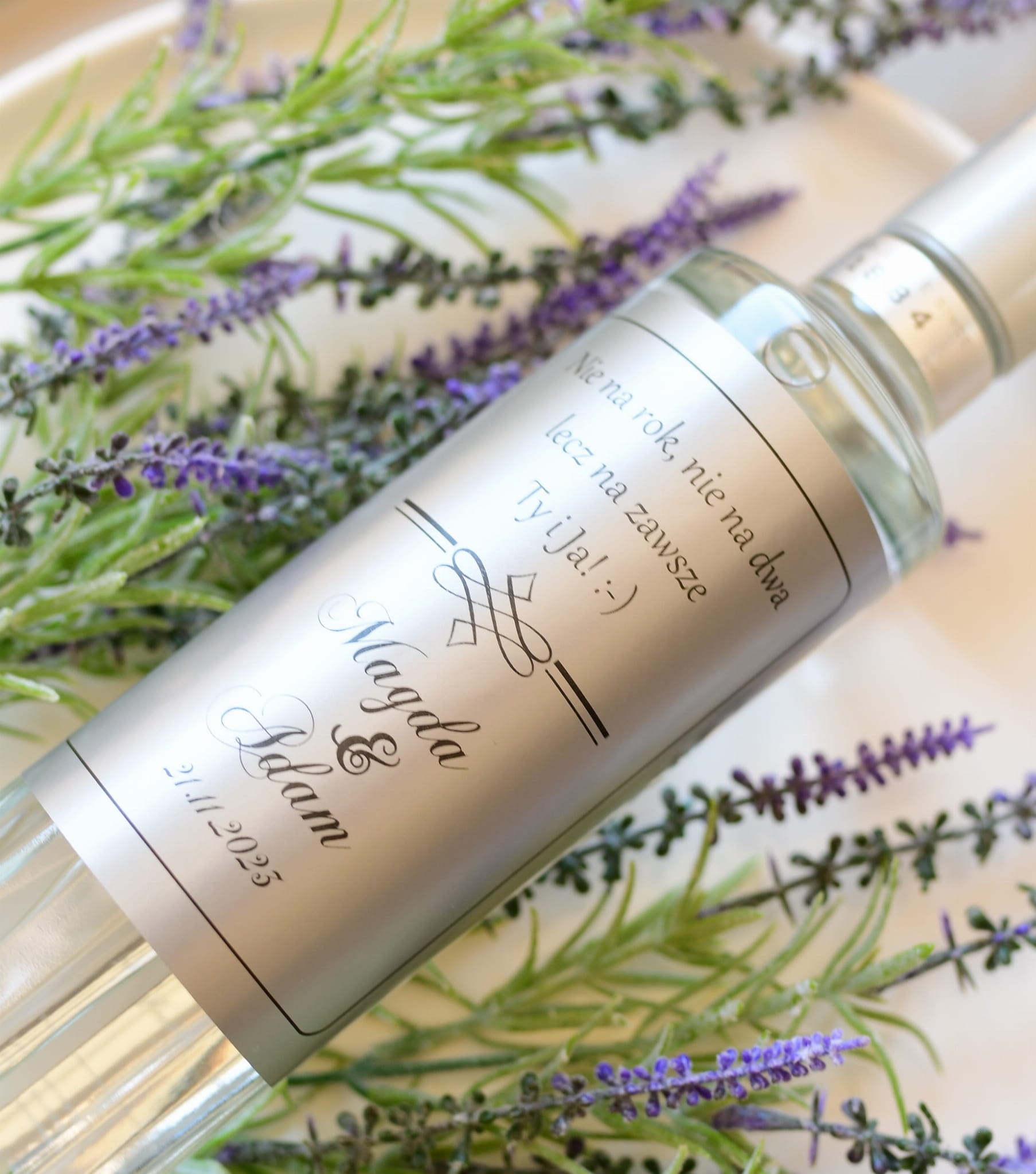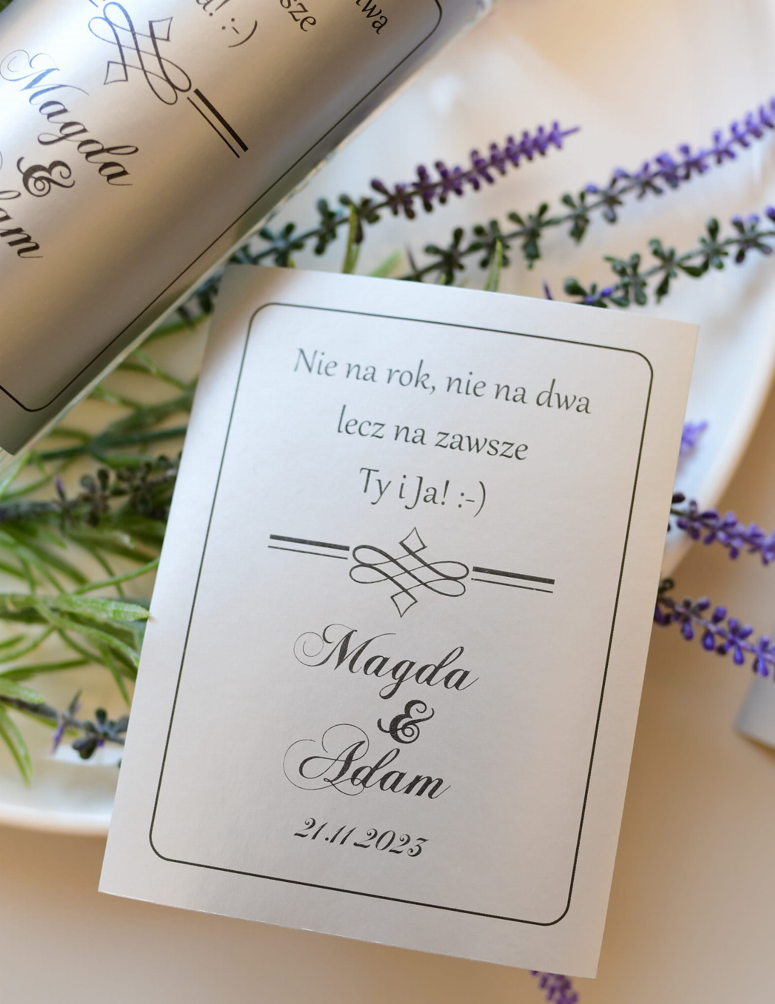 Bestseller top1 wśród etykiet na alkohol weselny. Elegancki, metalizowany srebrny wzór.