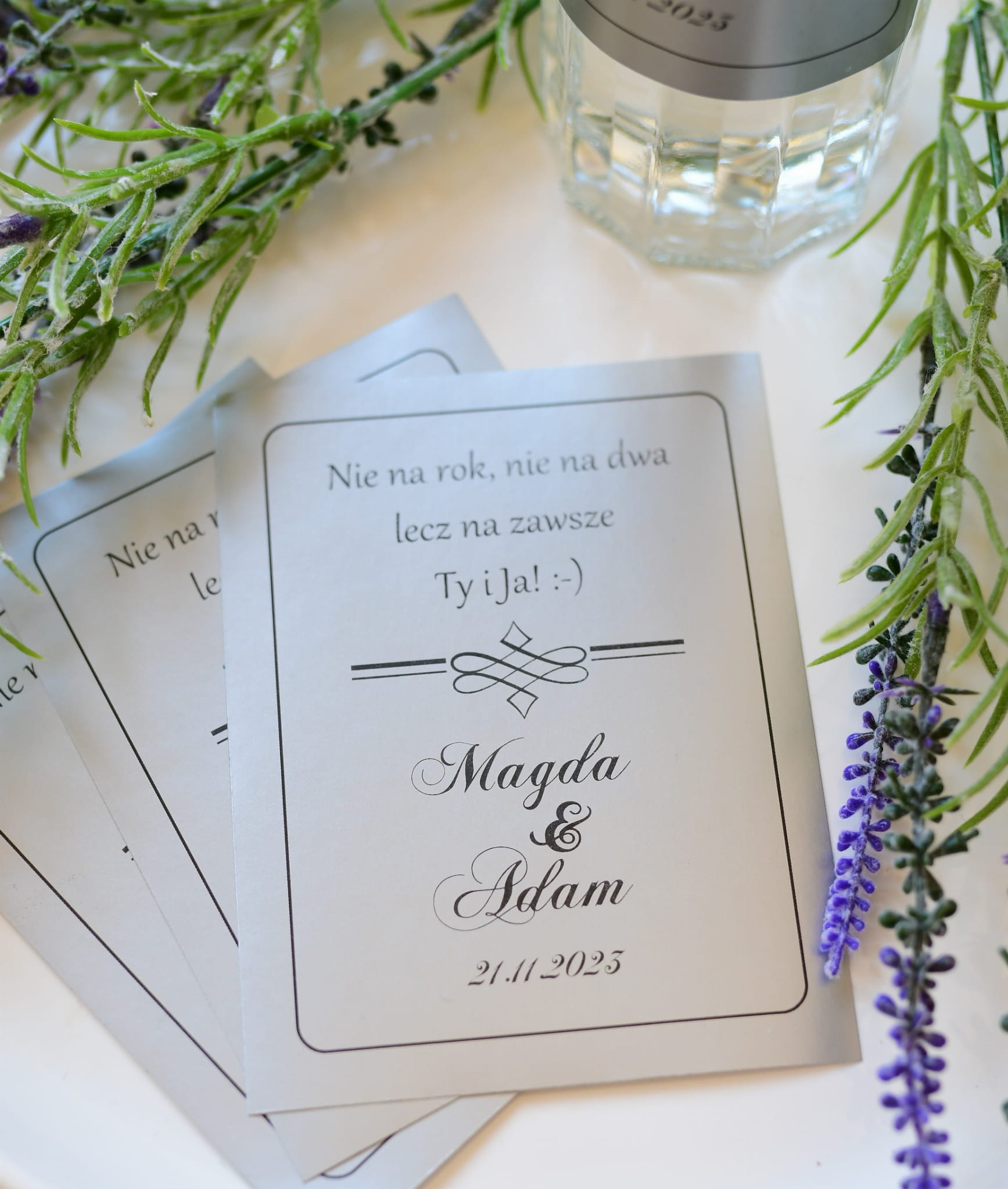 √ wpisz imiona Pary Młodej oraz datę ślubu;