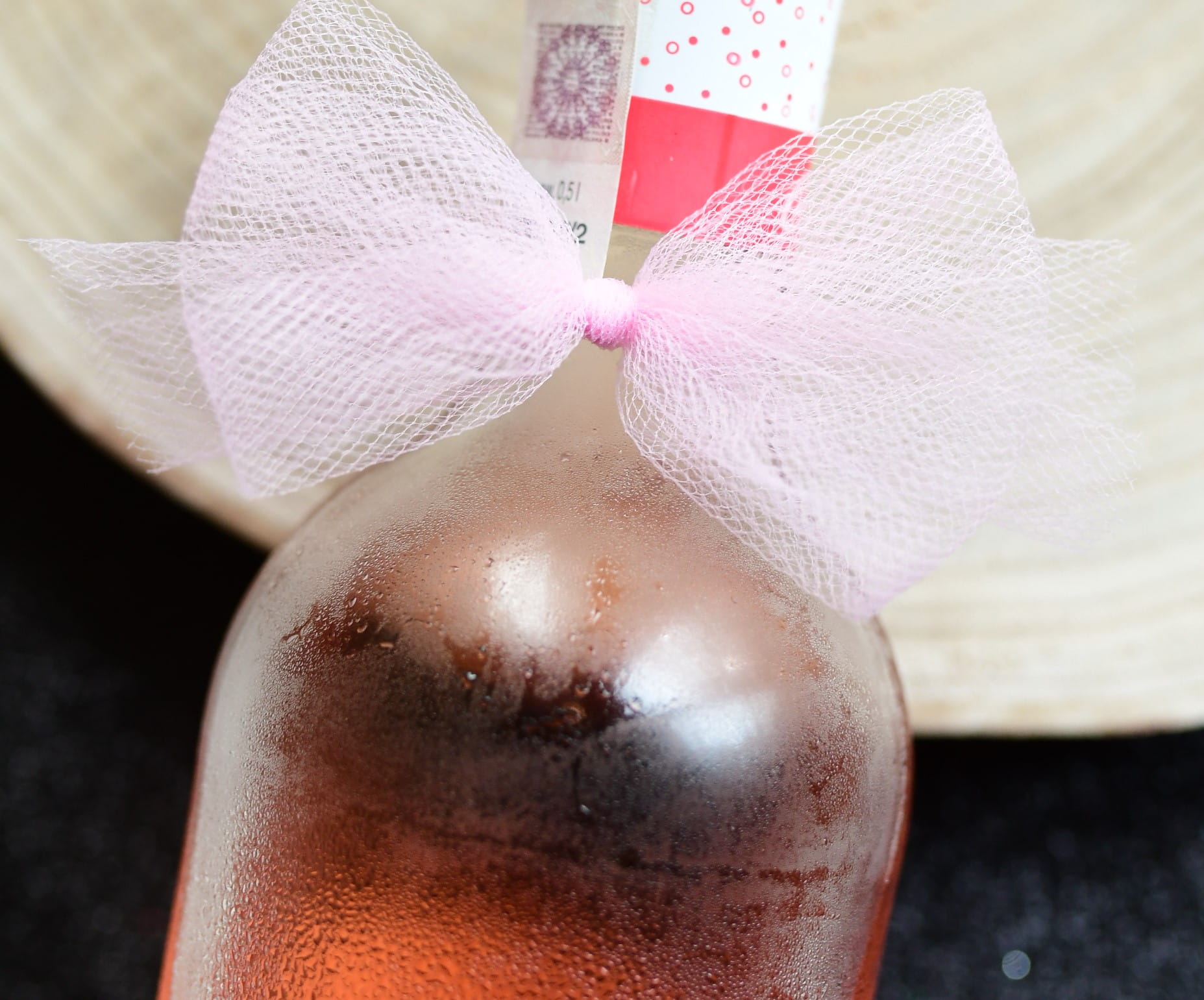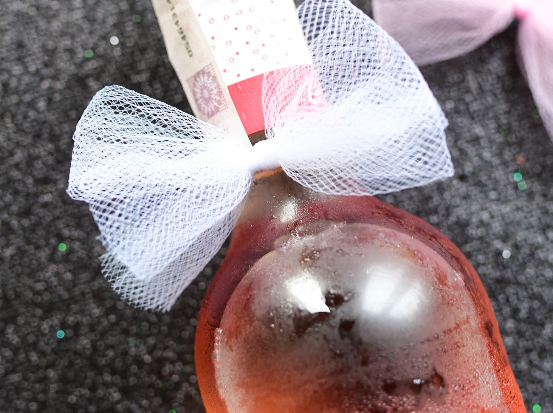 √ dzięki elastycznej gumeczce kokardka nie zsuwa się z butelki,