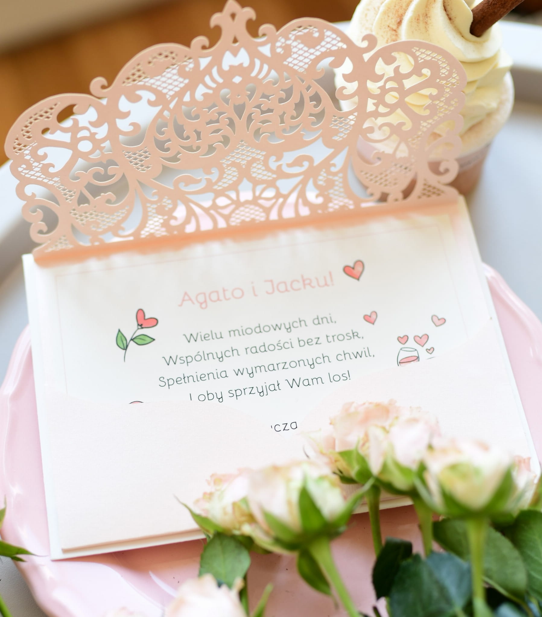 jasnoróżowa kartka z Twoimi życzeniami dla Pary Młodej - wzór nr 6