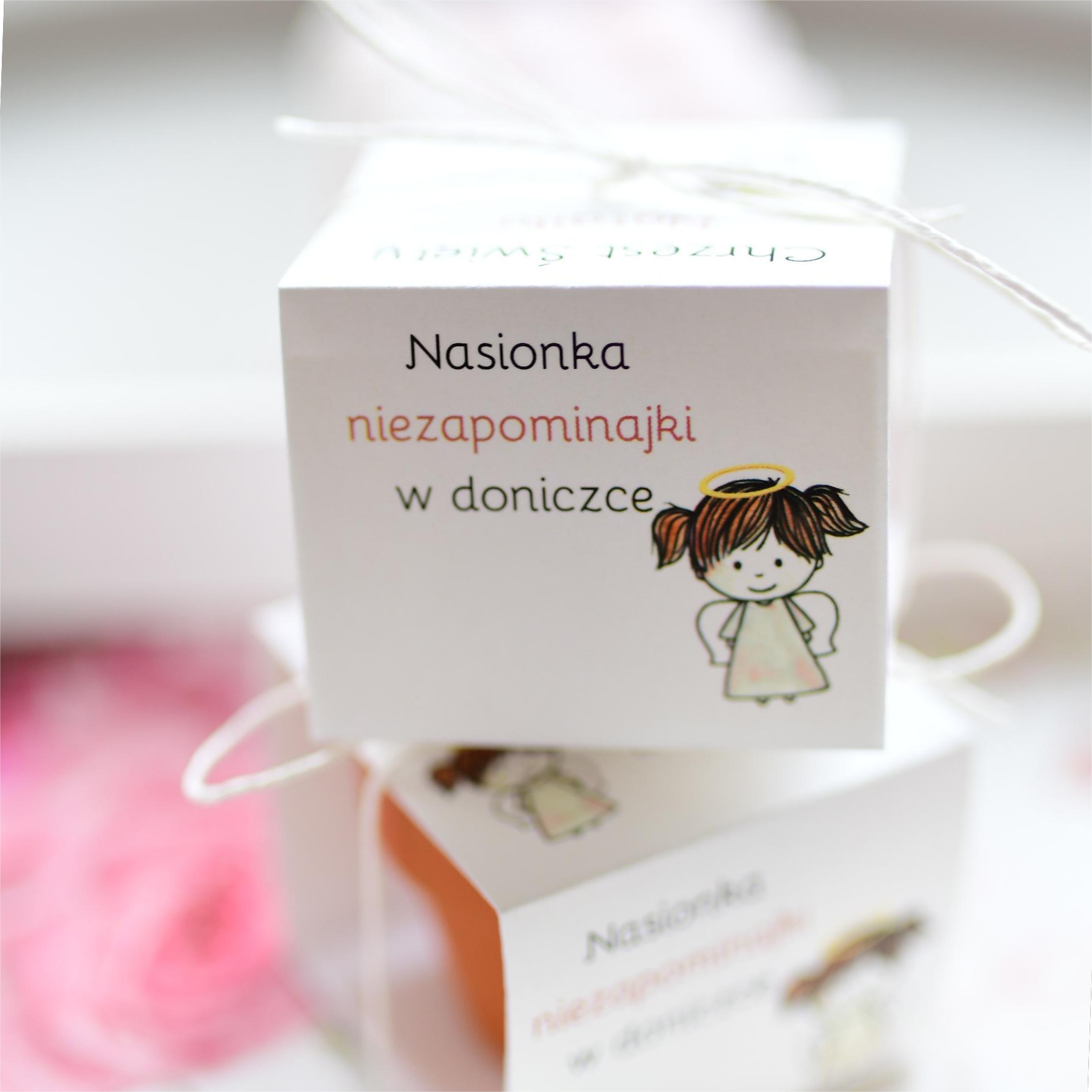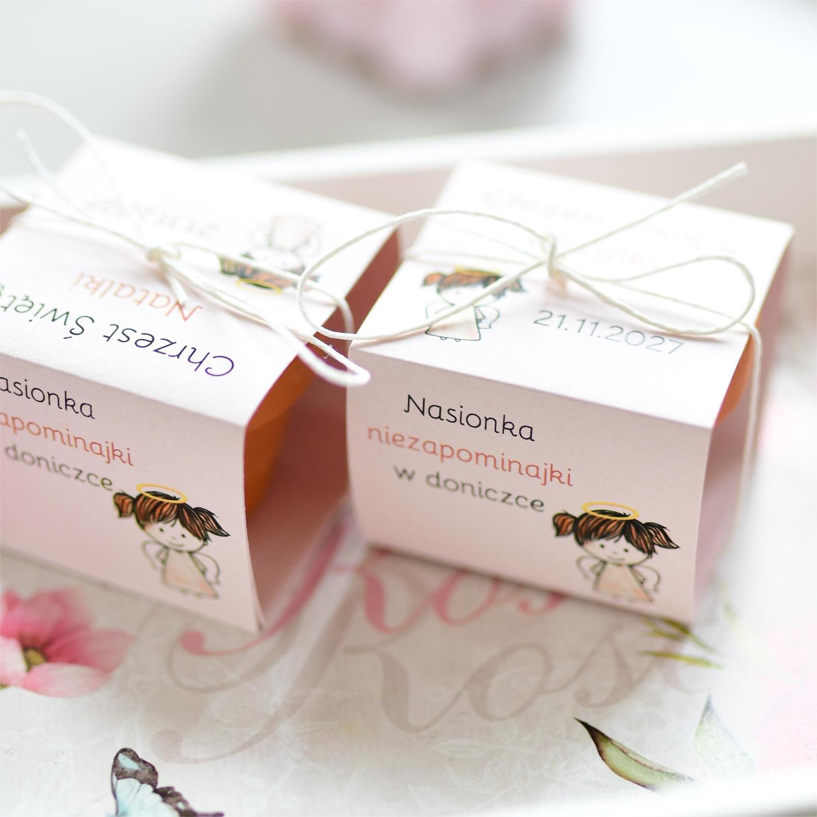 winietki i upominki na chrzest z aniołkiem - doniczki z nasionkami (minimalne zamówienie 15 szt.)