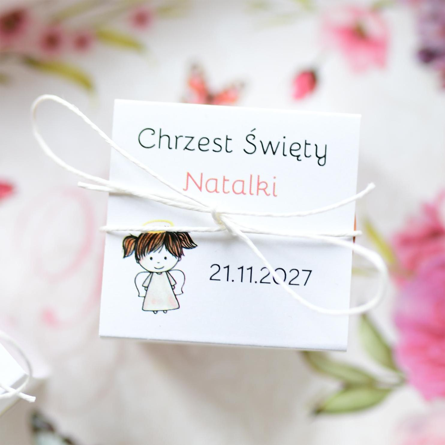 Winietki z podziękowaniem na chrzest dla dziewczynki z aniołkiem.