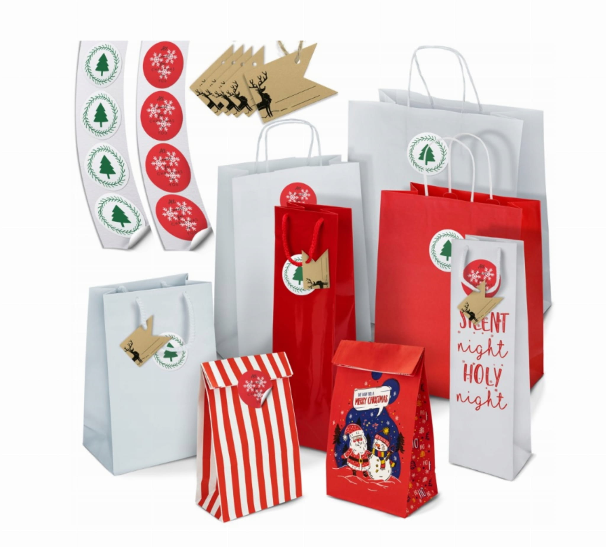 duży zestaw do pakowania prezentów - torebki + naklejki + zawieszki - BESTSELLER