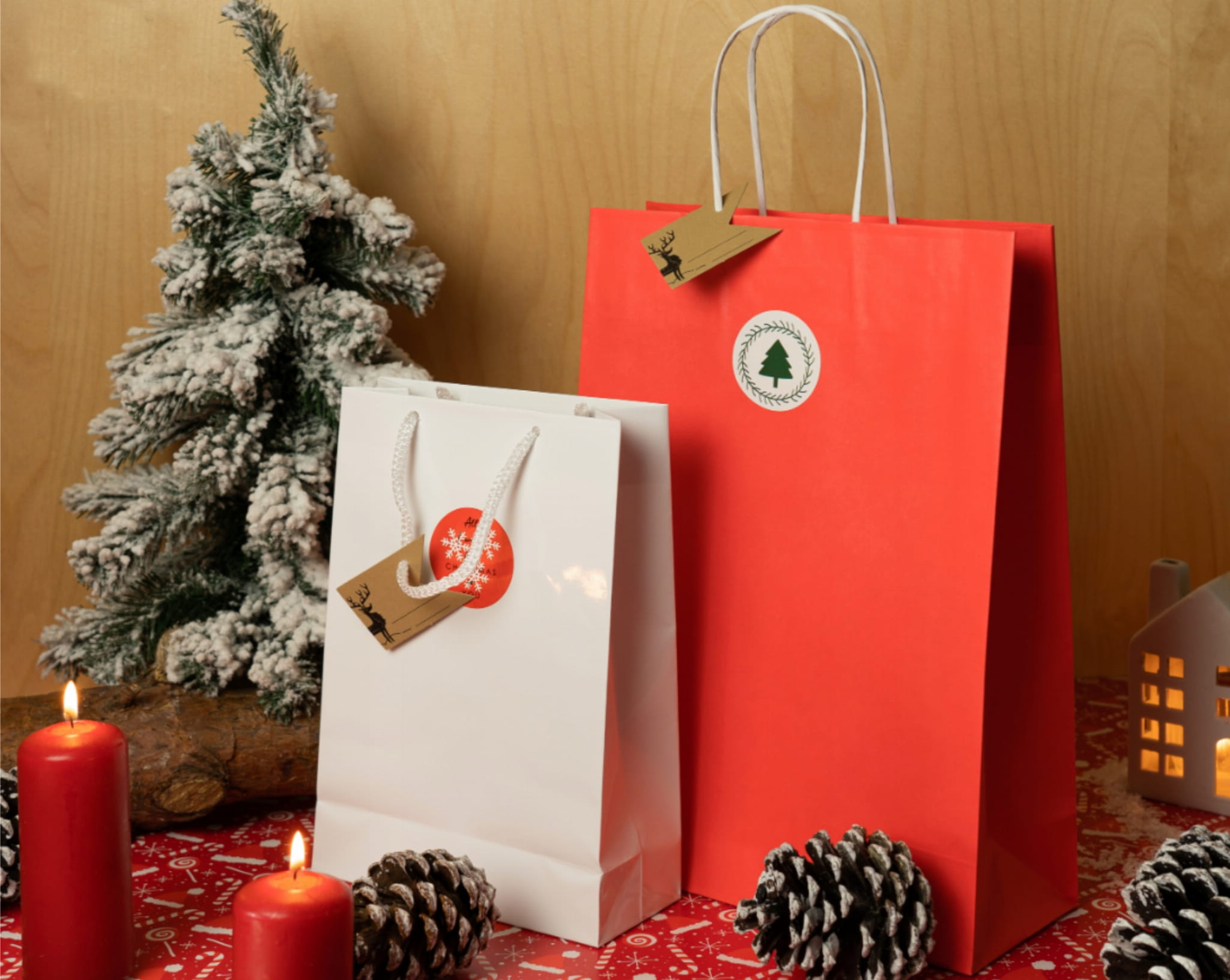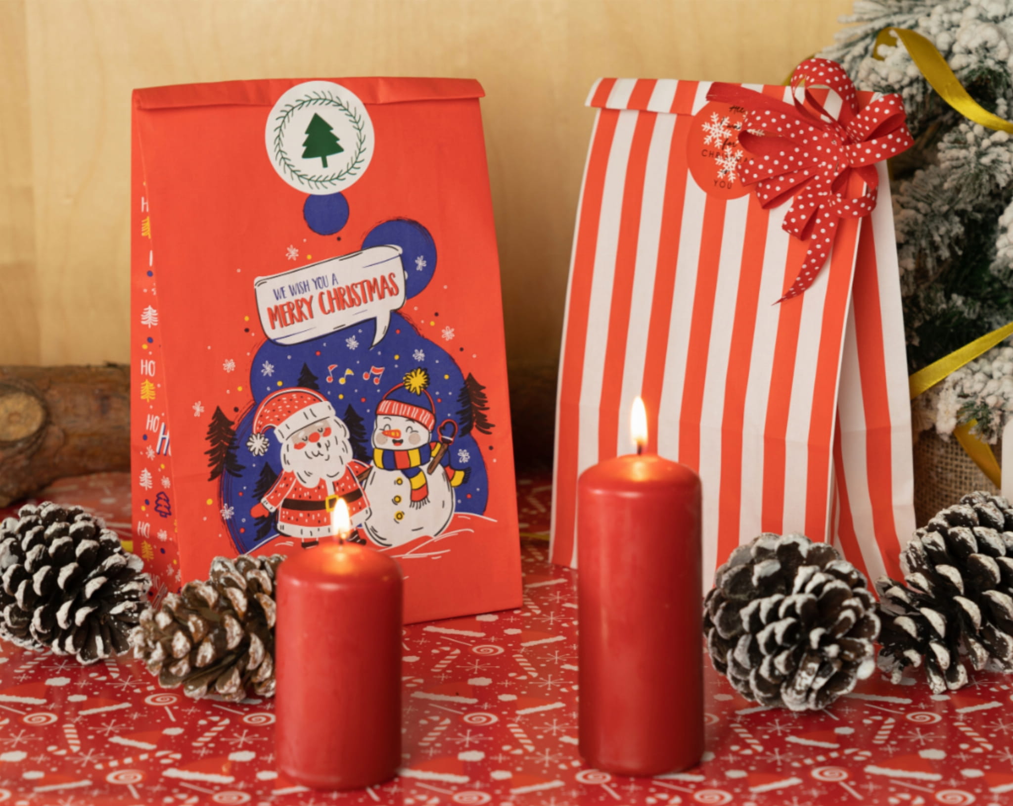 Zestaw do pakowania prezentów świątecznych. Torebki na Boże Narodzenie.