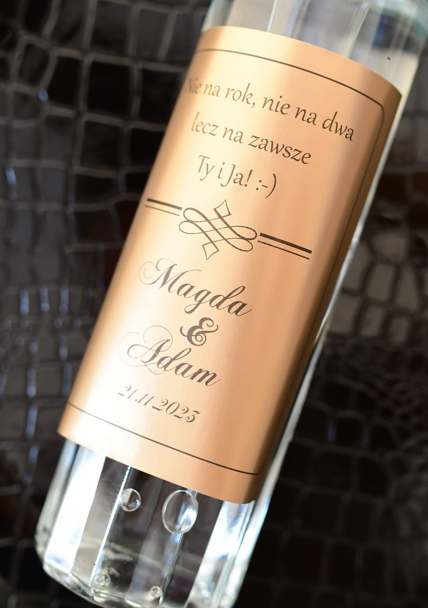 Jak zamówić złote, spersonalizowane naklejki na wódkę weselną?